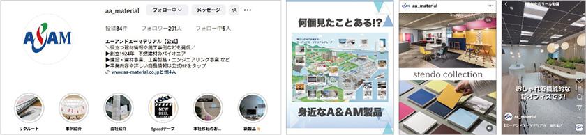 ITビジネス推進部は企業ブランディングを目的として、2024年9月より「Instagram」公式アカウントの運用を開始し、2025年2月からは定期的な投稿(フィード)に加え、動画による投稿(リール)をスタートしました。現在は「会社紹介」「製品・施工事例紹介」「リクルート」の3テーマを中心に、当社グループに関する紹介を行い、デジタルマーケティングの実践に向けた活動を展開しています。