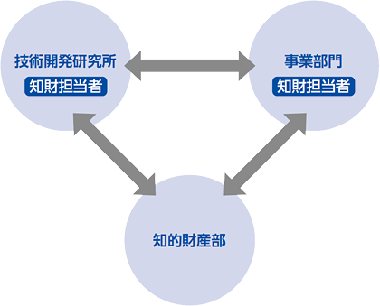 知的財産部は、事業視点に立った戦略的な知的財産活動を通じて、当社グループの事業競争力とブランド価値の向上を目指します。そのために、特許・非特許情報分析に基づくI Pランドスケープを一層推進し、グループ会社を含む事業部門からの信頼を獲得するとともに、事業拡大に貢献しています。