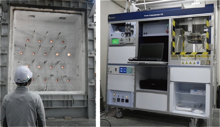 燃料転換を実施した耐火炉による耐火試験の様子/発熱性試験機知的財産部